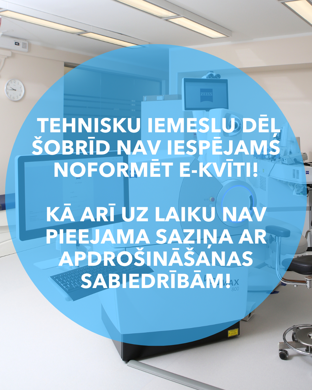 Informējam, ka tehnisku iemeslu dēļ šobrīd nav iespējams noformēt e-kvīti (klientam tiks izsniegta kases ordera kvīts), kā arī uz laiku nav pieejama saziņa ar apdrošināšanas sabiedrībām. Tehniskā dienesta speciālisti jau strādā pie problēmas novēršanas. Atvainojamies par sagādātajām neērtībām!